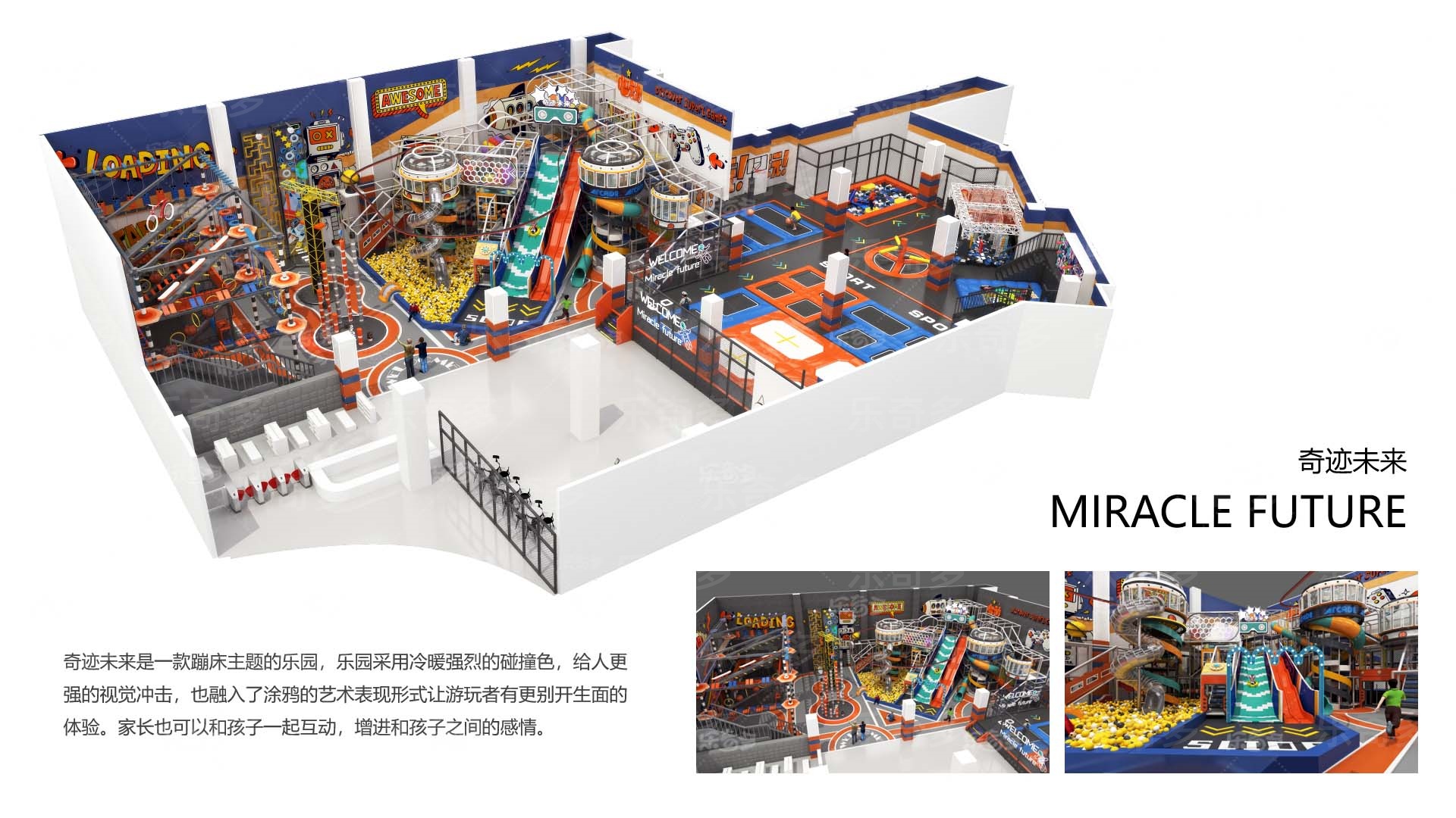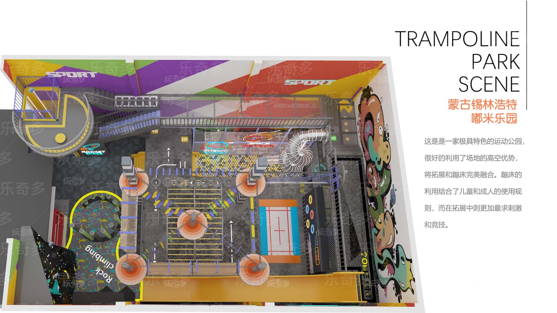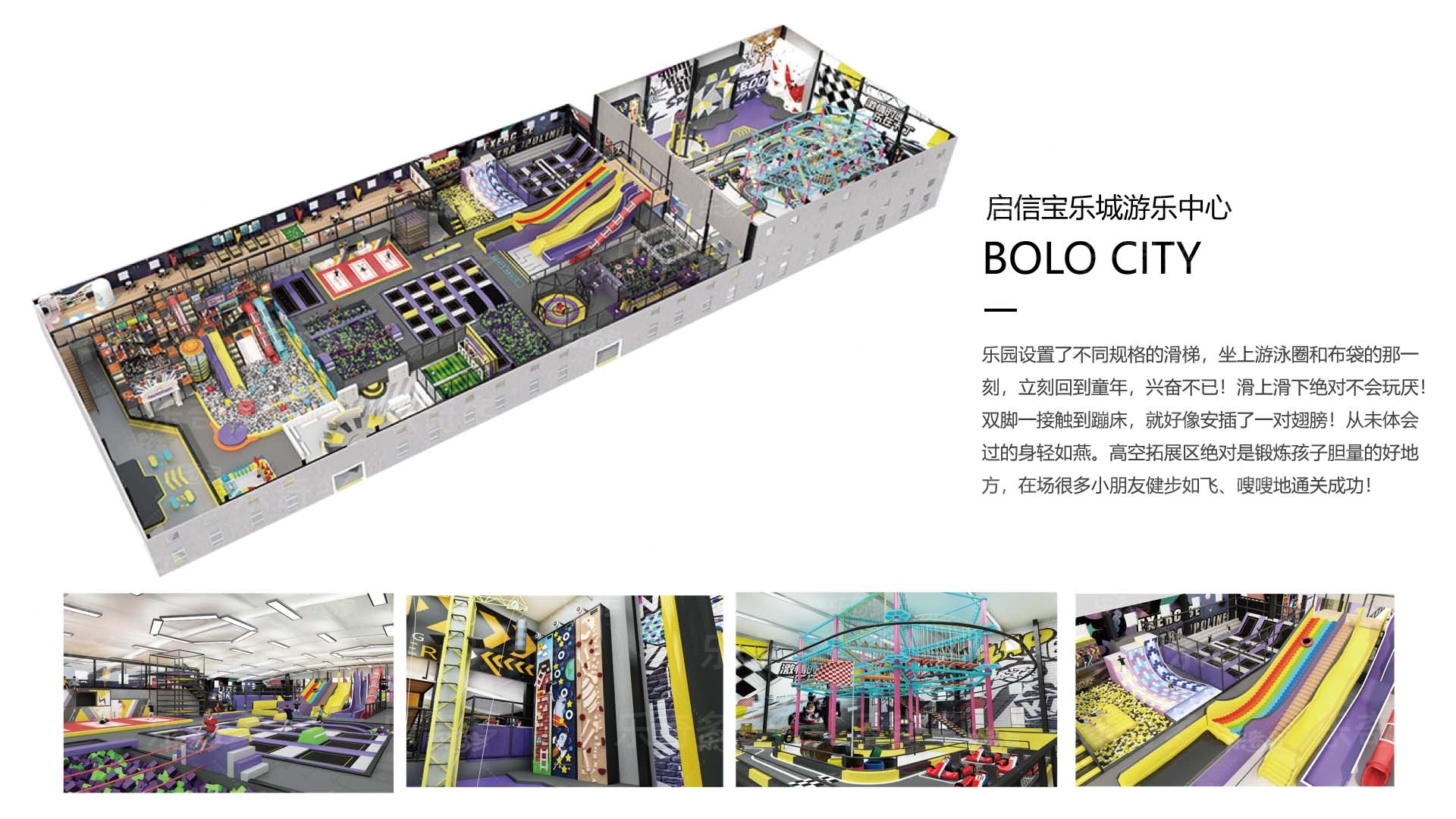 項(xiàng)目玩法:專業(yè)蹦床、自由蹦床、走避墻、螺旋滑梯,波浪滑梯,互動投影,忍者拓展,創(chuàng)意攀巖,抱石攀巖,信仰之躍,梅花樁,高空拓展等。