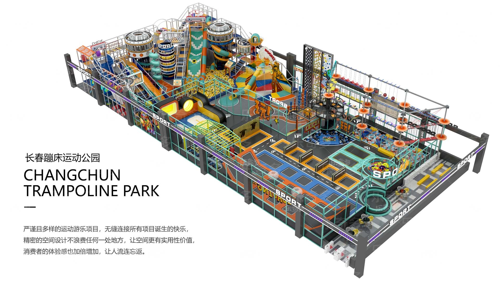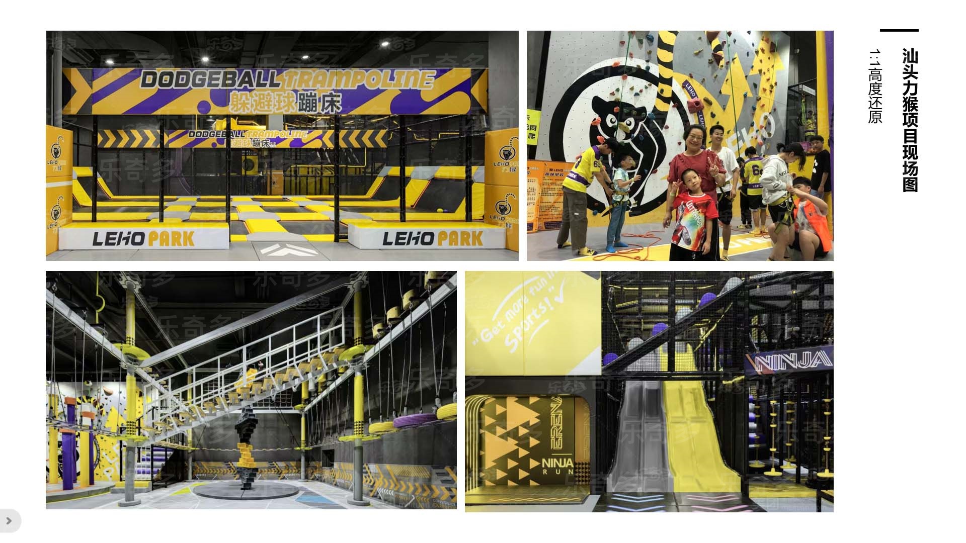 項(xiàng)目玩法:專業(yè)蹦床、自由蹦床、走避墻、螺旋滑梯,波浪滑梯,互動投影,忍者拓展,創(chuàng)意攀巖,抱石攀巖,信仰之躍,梅花樁,高空拓展等。
