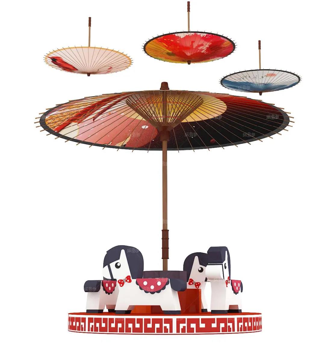 3.油紙傘轉(zhuǎn)馬煙雨蒙蒙,小朋友們來到了江南,這里青石綠苔,雨點打在紅瓦上,濺起漣漪。我們的小轉(zhuǎn)馬,做成了油紙傘的造型,在下面就仿佛來到了別樣的江南,轉(zhuǎn)上一圈,別有一番滋味?!狤ND—何處是神州?“讓我們走進國風(fēng)樂園,體驗真正的中華文明吧!”